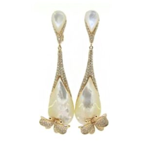 A pair of ‘Dazzle’ dangle diamond and mother-of-pearl earrings with miniature butterflies