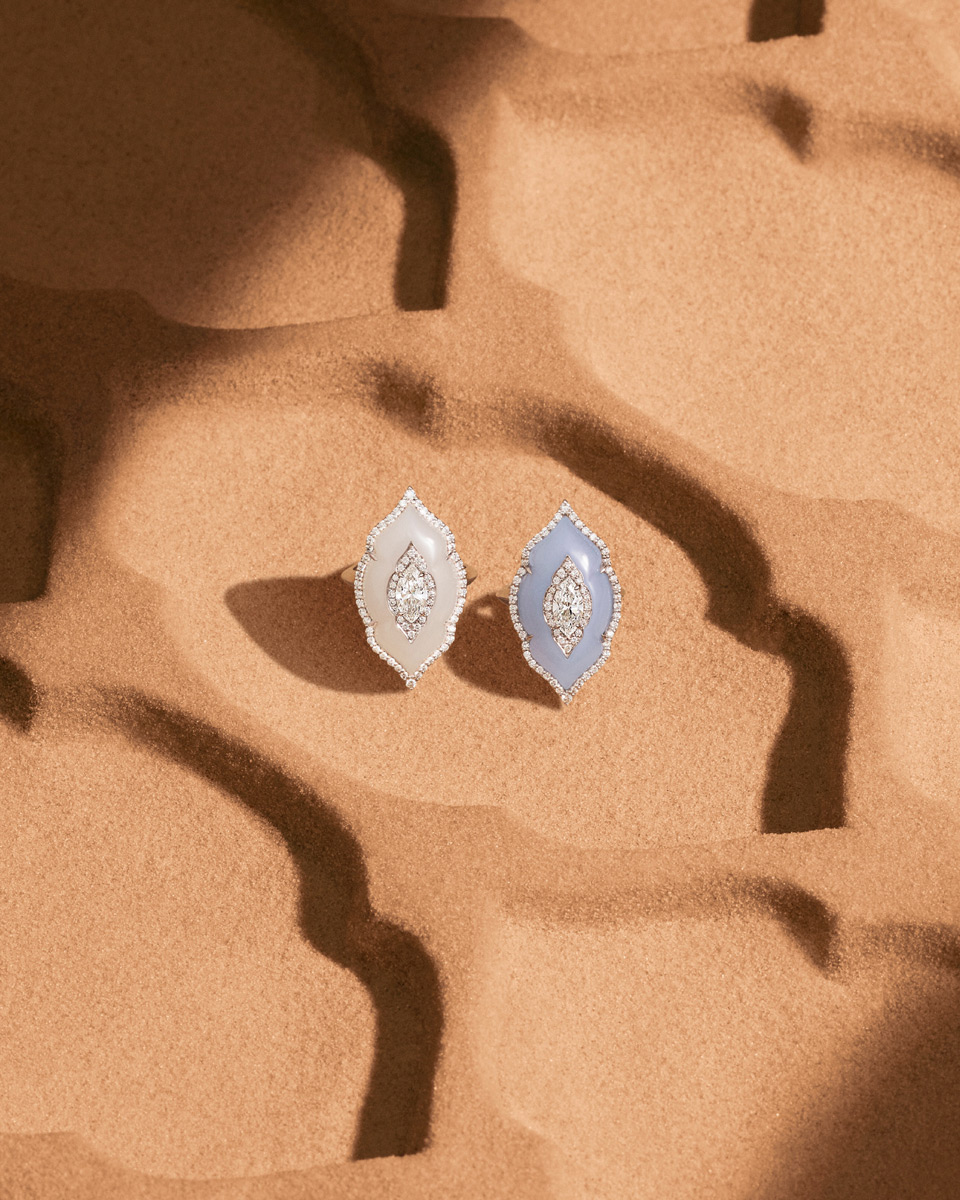 Boghossian_Arches-Diamond_Milky-and-Grey-Agate-Ring_Lifestyle