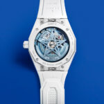 The integrated white ceramic bracelet lends the watch a seamless, architectural feel, while an additional white rubber strap with a starry pattern gives it sporty versatility. Thanks to Zenith’s quick-change strap system, switching styles requires no tools.