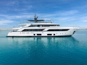 Among the stars of the season was the Navetta 42, a 41.8-metre villa-on-the-water conceived for a family from the AMAS region. With generous, American-style living spaces, a wellness area, and interiors dressed in soft beige and brown with prized marble finishes, it exudes warmth, functionality, and sophistication.