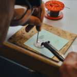 The dial is a small masterpiece in itself: three separate components, two recessed subdials, each produced individually and joined with meticulous care. Fine layers of enamel powder are brushed on by hand, then fired at over 800°C to fuse into the copper base. The numerals, pulsation scale, and logo are printed with enamel-based inks, each colour perfectly aligned before one last firing seals them forever. Every dial emerges with its own subtle variations — no two exactly alike, each a one-of-one.