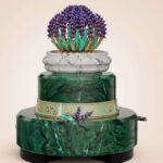 The Brassée de Lavande firmly resides within the lineage of Van Cleef & Arpels’ Extraordinary Objects collection, which has, since 1906, reflected the customs of the time and the peak of the Maison’s expertise. These pieces go beyond function to offer a distinctive, poetic vision of time’s passage, here, time seems to pause within the heart of a lavender bouquet.