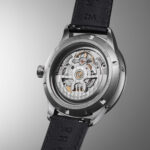 Turning the watch over, the exhibition caseback offers a view of the automatic ML302 calibre. Decorated with Côtes de Genève, perlage, and colimaçon finishes, it is a movement that honours tradition while serving modern functionality. The skeletonised rotor, adorned with trait tiré and colimaçon, continues the visual language established on the dial side.